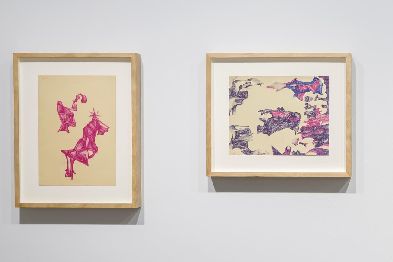 Image: Sans titre 043 (période Rue Manuel), v. 1954-1962, stylos bleu, noir et rouge et graphite sur papier, 21 x 27 cm (8,25 x 10,5 po)