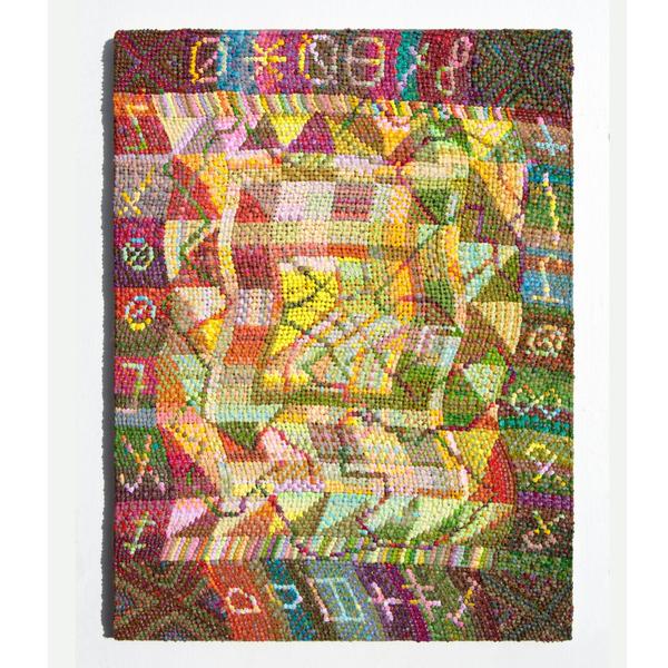 "[...] Just imagine how this piece by Mark Stebbins (Cipher) was made. It looks like embroidery, right? Each “stitch” is actually a dot of acrylic paint, which Mark patiently applied to burlap. He showed the painting at Art Toronto the other week."