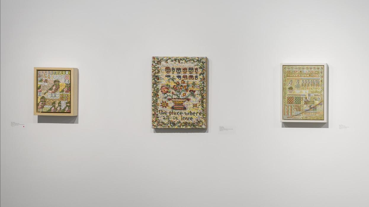 Up until recently, I tended to work in an impressionistic way in relation to these sources. They would get filtered through my imagination, a kind of background to the ideas I’d be trying to connect in a painting. While engaging with the collection at Museum London for my recent exhibition there, I found it more interesting to respond specifically to particular works, mostly 18th and 19th century embroidery samplers from Southwestern Ontario. I’d study the pieces in detail, repeating or adapting some of the motifs as a way to make connections across time (example, Mackie’s Birds [Remix], 2024, Echoersand Off Grid, both 2025).”