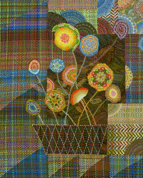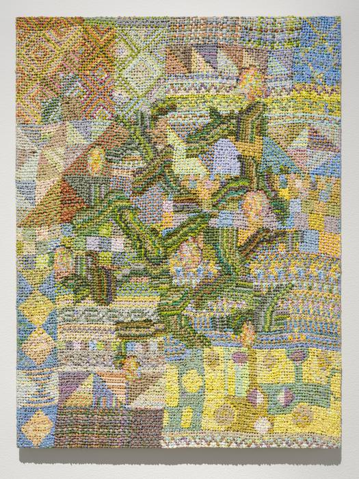 More specifically, I’m endlessly compiling a wide variety of visual research which gets reflected in my work. This includes historical and contemporary textiles, quilts, embroideries, tapestries, diagrams, flowers, botanical drawings, snapshot photography, pixel art, digital and analogue glitches, and of course, broadly, historical and contemporary painting.